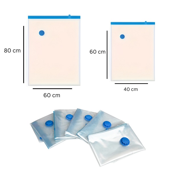Ξεμένετε από χώρο στην ντουλάπα; Δυσκολεύεστε να χωρέσετε τα πάντα στη βαλίτσα σας; Οι σακούλες αποθήκευσης κενού αέρος VACKBAGS συμπιέζουν τα ογκώδη αντικείμενά σας έως και 80%, δίνοντάς σας άμεσα χώρο για ό,τι έχει σημασία. Απλώς συσκευάστε τα ρούχα ή τα κλινοσκεπάσματα, σφραγίστε τη σακούλα και χρησιμοποιήστε οποιαδήποτε οικιακή ηλεκτρική σκούπα για να αφαιρέσετε τον αέρα – διαρκεί λιγότερο από 60 δευτερόλεπτα. Περισσότερος χώρος, λιγότερη ακαταστασία, καθόλου κόπος.