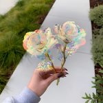 Κάθε τριαντάφυλλο είναι κατασκευασμένο με μια ιριδίζουσα, ολογραφική επίστρωση που λαμπυρίζει υπέροχα στο φως, δημιουργώντας μια λάμψη που μοιάζει με γαλαξία και είναι απλά μαγευτική.