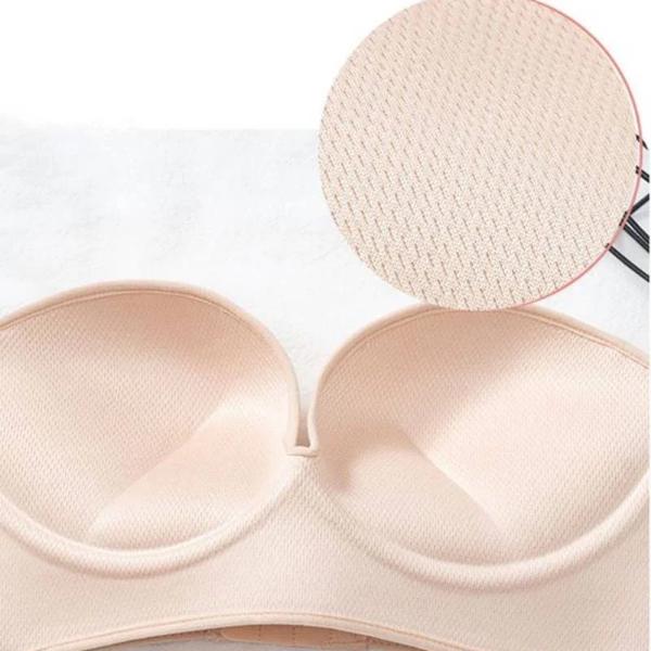 Η επένδυση σιλικόνης, η οποία προσκολλάται στο δέρμα, εξασφαλίζει ότι το σουτιέν παραμένει σταθερά στη θέση του χωρίς να γλιστράει.