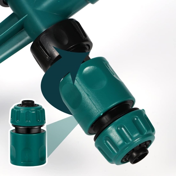 Με τα διπλά ακροφύσια του σωλήνα νερού του ROTOSPRITZ, μπορείτε να συνδέσετε αβίαστα πολλαπλούς ψεκαστήρες για να καλύψετε μεγαλύτερες περιοχές. Απλά συνδέστε δύο ή περισσότερες μονάδες ROTOSPRITZ μεταξύ τους για άρδευση διπλής όψης, εξασφαλίζοντας ότι ολόκληρος ο κήπος σας λαμβάνει την ιδανική ποσότητα νερού. Αυτή η απρόσκοπτη συνδεσιμότητα το καθιστά ιδανικό για εκτεταμένους χλοοτάπητες και μεγάλα παρτέρια κήπων.
